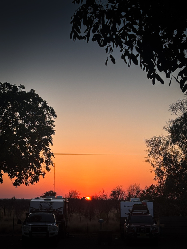 Le lendemain je me réveille comme une fleur ayant passé une des meilleure nuit depuis le départ. Le sol à l’extérieur est trempé mais, à mon étonnement, je n’ai pas du tout ressenti l’humidité à laquelle je m’attendais. L’extérieur du swag, lui aussi est bien mouillé, ainsi que les chaises, le auvent, les tapis extérieurs et les quelques accessoires laissés dehors pendant la nuit. Je vérifie la météo sur Cairns qui est à 6 heures plus au Nord. Ni une ni deux j’annule Cairns où il pleut non stop pendant au moins 1 semaine. Direction 👉🏻 Uluru  🌋 et le Northern Territory.